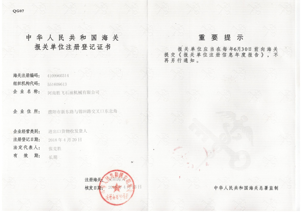 • 海關(guān)報(bào)關(guān)單位注冊(cè)登記證書(shū)